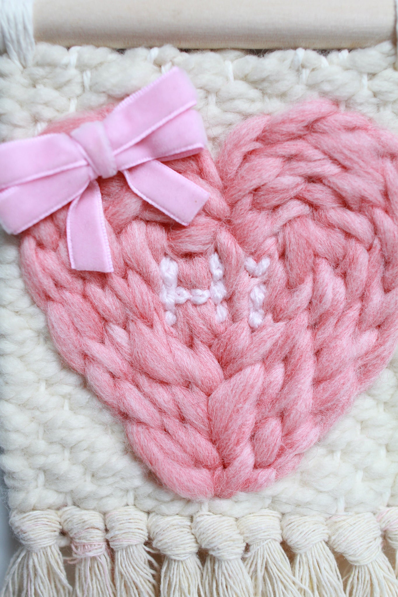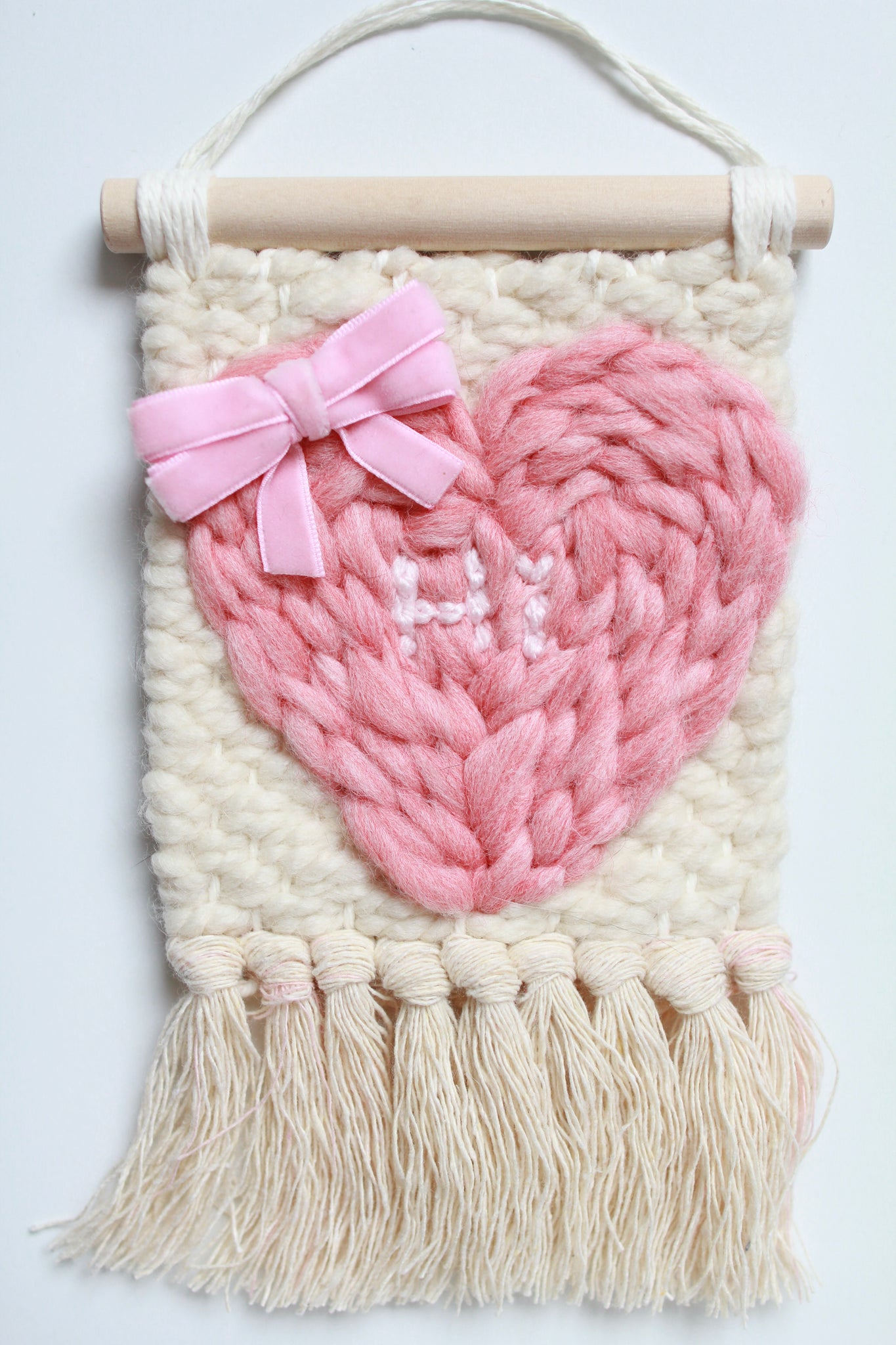 A mini heart wall hanging with bow
